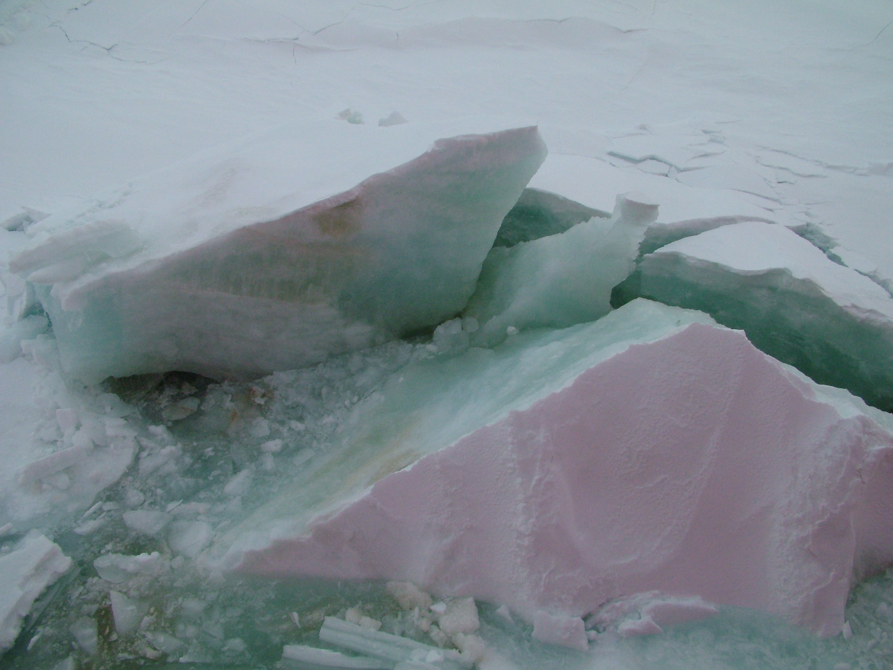 A view of broken sea ice seen by the hull of the USCGC Healy.
