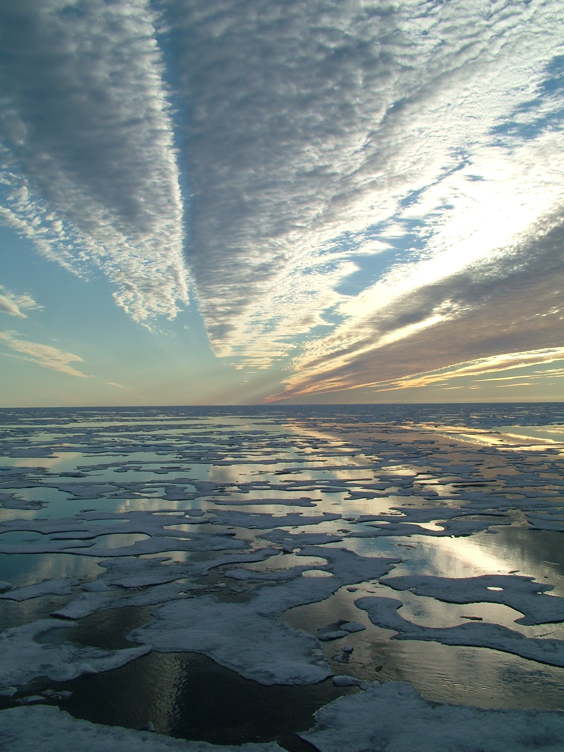 A view of the sea ice of the Arctic Ocean as seen from the deck of the USCGC Healy.