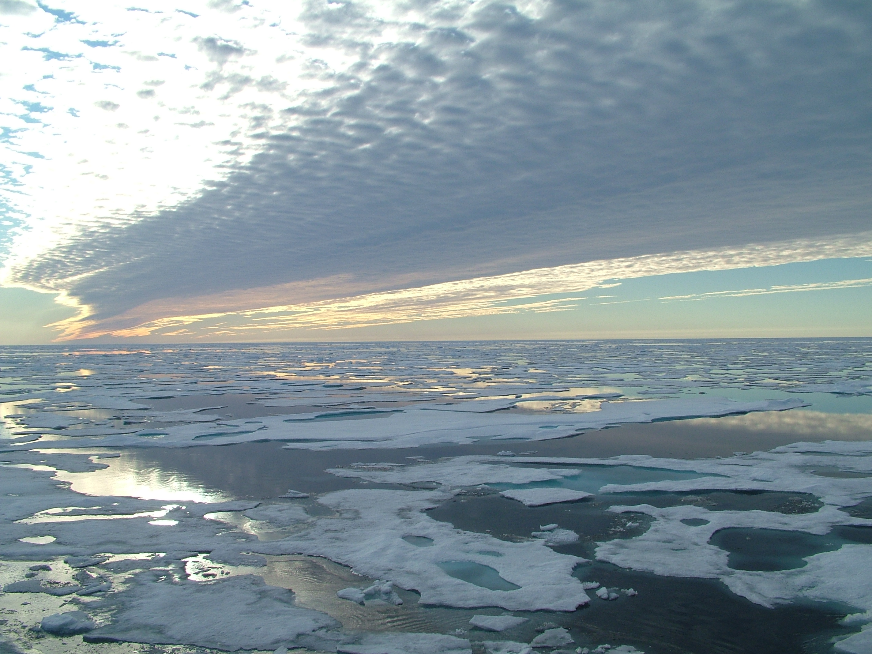 A view of the sea ice of the Arctic Ocean as seen from the deck of the USCGC Healy.