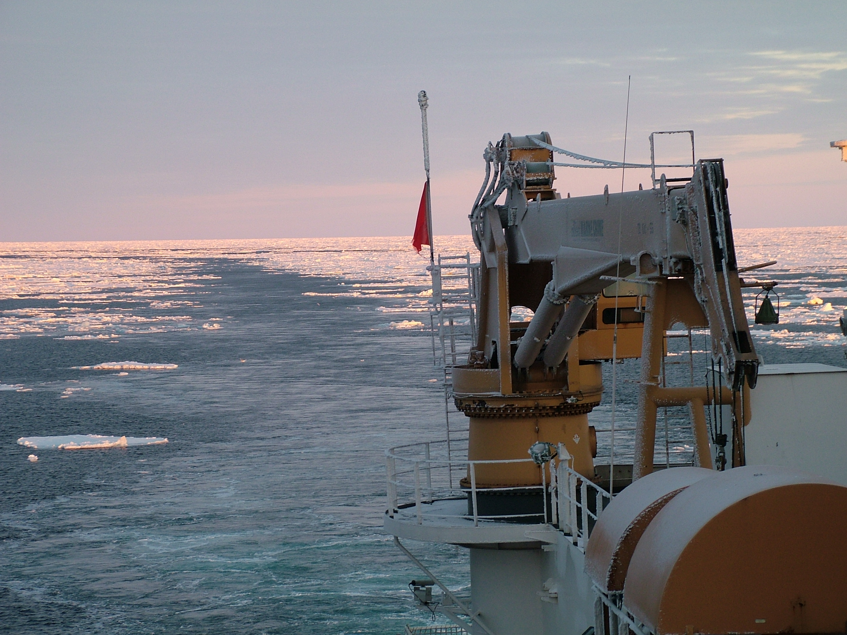 A view of the trail through the ice of the Arctic Ocean left by the USCGC Healy.