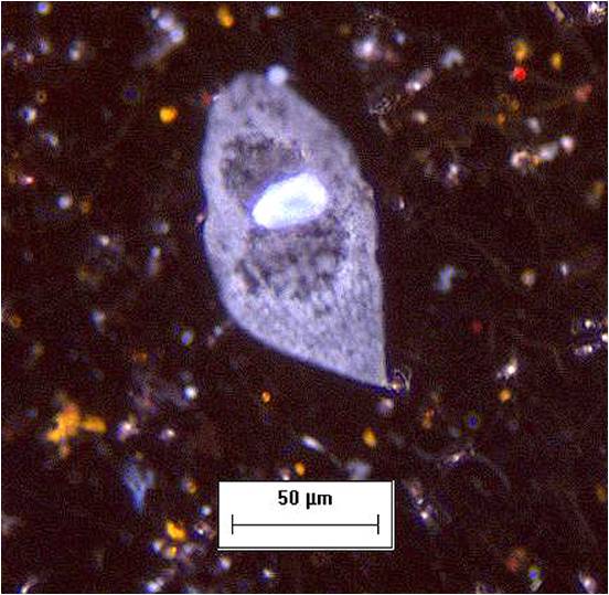 Notice how nothing is glowing in this heterotrophic dinoflagellate's belly. Aboard the USCGC Healy icebreaker, on the Bering Sea.