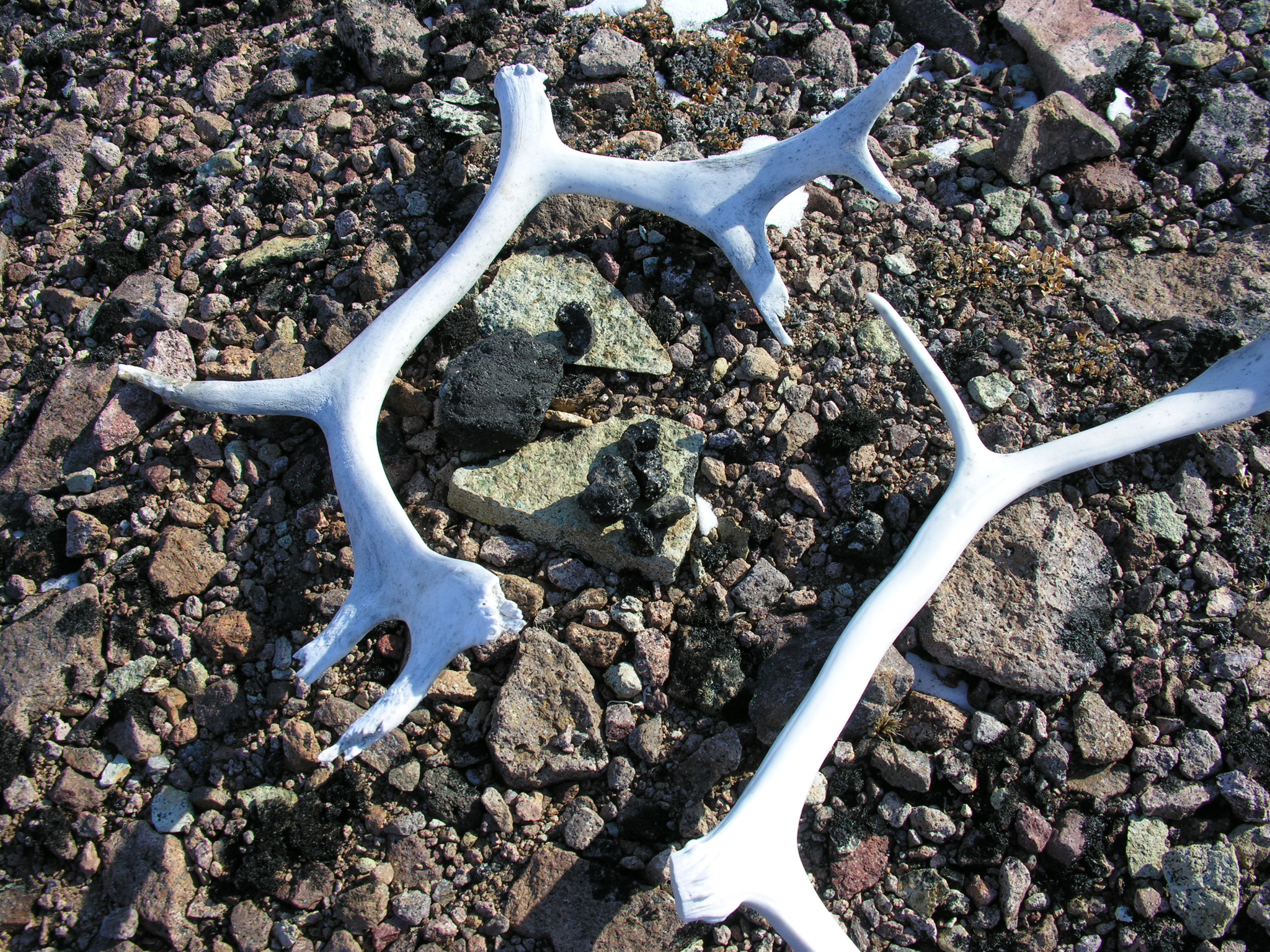 Antlers and impact glass found on an afternoon hike. Camp El'gygytgyn, Chukotka, Russia.