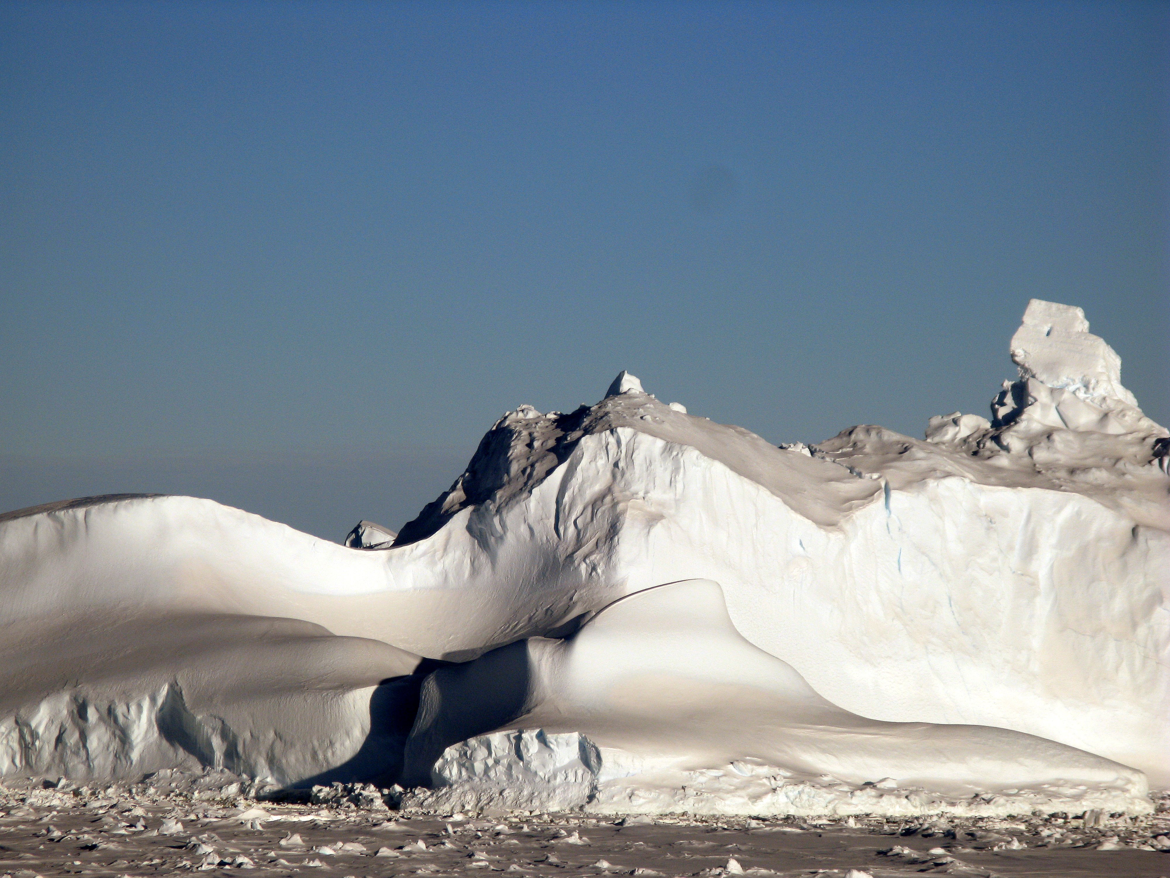 Sculpted iceberg in shades of white, grey, and brown. Aboard the icebreaker Oden near the Getz Ice shelf, Amundsen Sea.