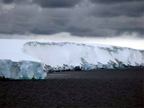 A huge iceberg with a curved wall. Aboard the icebreaker Oden in the Amundsen Sea.