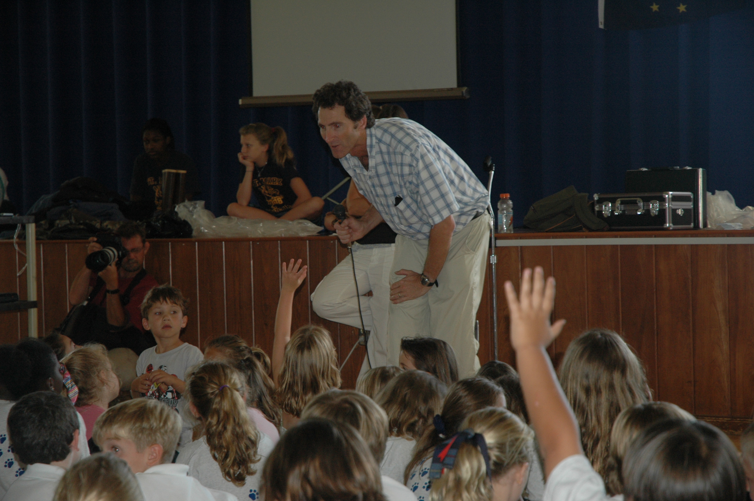 Elizabeth Eubanks says, "Dr. Oberbauer is our guest at the St. Mark Catholic School Polar Year kick off. He answered many question and taught the kids that there are no penguins in the Arctic and no Polar Bears in the Antarctic!" At St. Mark Catholic School in Boynton Beach, Florida.