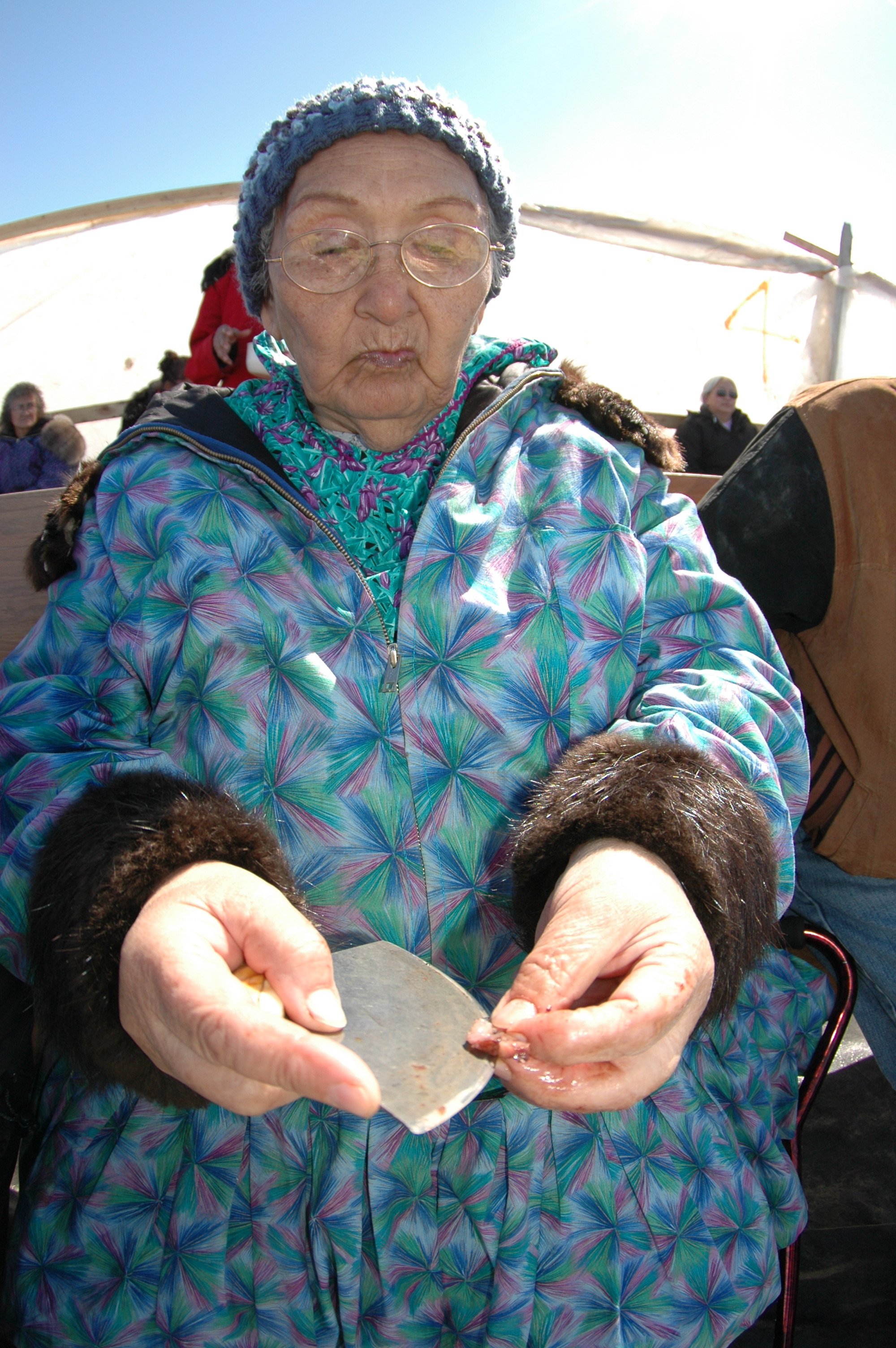 How to use an ulu the right way. On the beach in Barrow, Alaska.